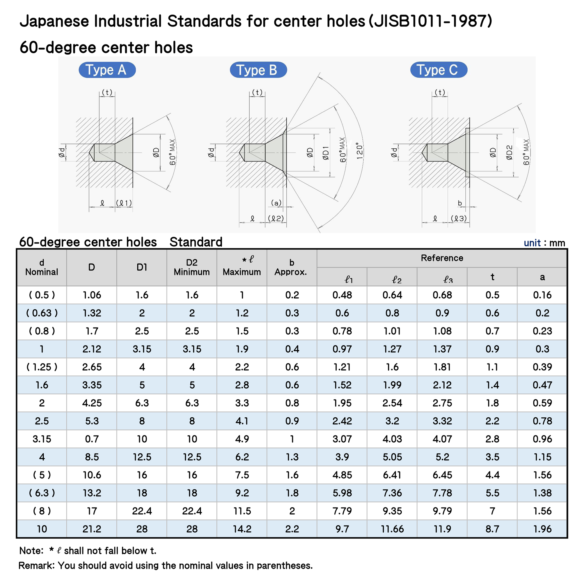 Japanese Industrial Standards for center holes(JISB1011-1987)