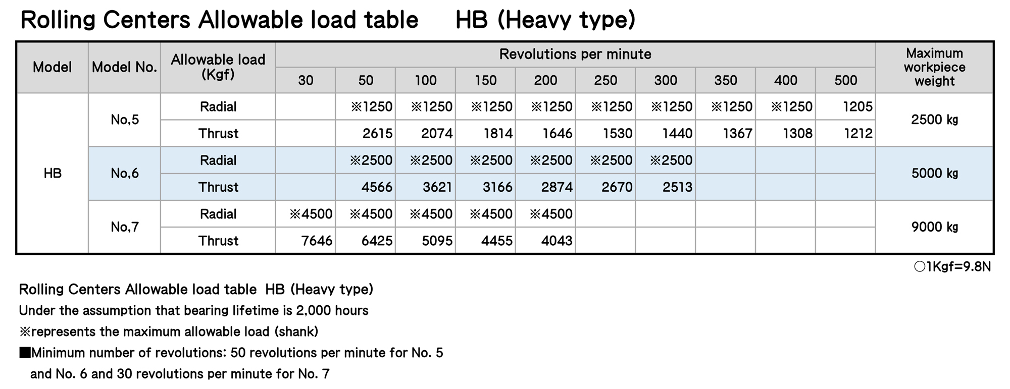 ■ Maximum rotation rate is 3,500 revolutions per minute for No.2, 3,000 revolutions per minute for No.3, 3,000 revolutions per minute for No.4 and 2,500 revolutions per minute for No.5.