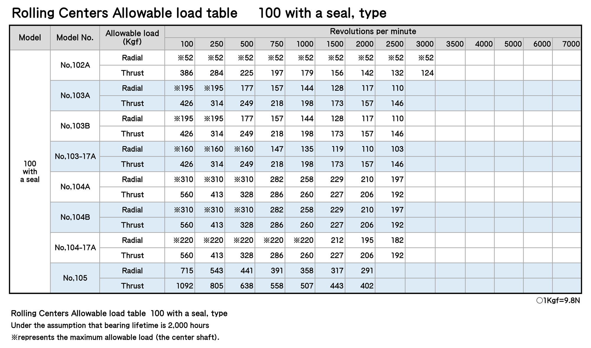※represents the maximum allowable load (the center shaft).